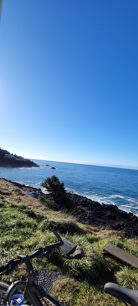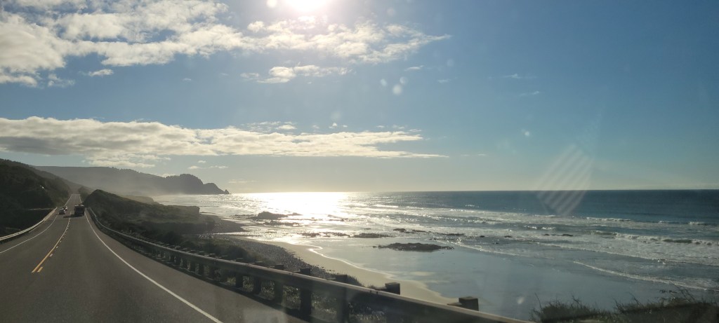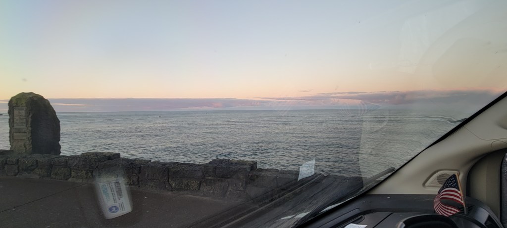 As the sun was just sneaking behind the horizon, Julie hopped back in the car and wound down the coast for 2 hours until reaching her destination for the night, Depoe Bay. She had read that it was one of the best spots to spot whales all year round. She parked at a viewing spot that had no “no overnight camping” signs and fell asleep with the sounds of 101 just outside the window. In the morning, she relocated to a slightly more scenic overlook and enjoyed a morning working on projects and keeping an eye out for whales. When it was time to go, she accepted that, because her focus had been only intermittent on the beautiful ocean down below, she wouldn’t see one. She crawled into the front seat to get ready to leave and got a glimpse of a humbback coming to shore just as she went to turn the keys!