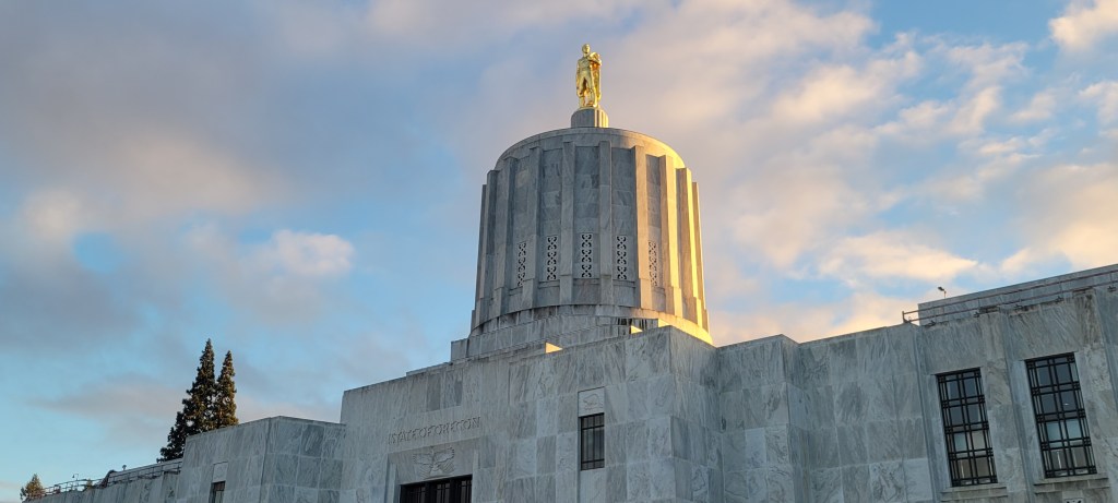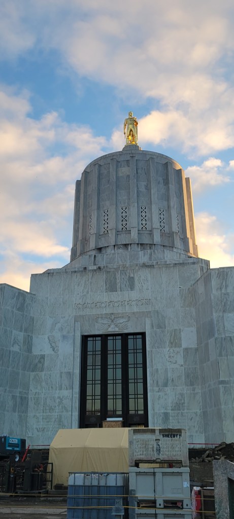 The Oregon capitol was two things. It was a beautiful building with a striking dome-like tower that was neither a tower nor a dome and cast a striking figure against a sunsetting sky.