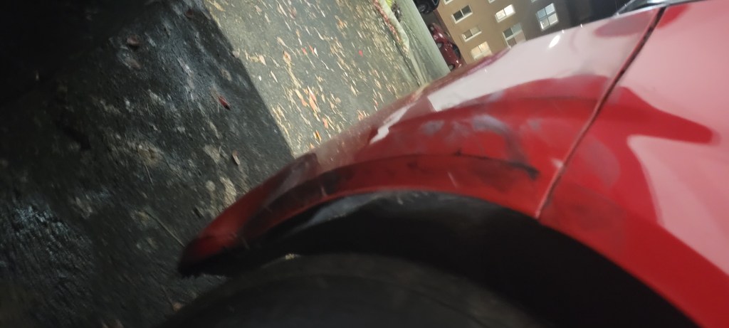 We also had our first (and let’s hope last) vehicular incident in Portland. Julie had been looking forward to some gluten free pizza at a place she knew in southeast Portland. It happened to be a place with a very small parking lot. BUT, Ryan skillfully maneuvered teh van into a spot and we went in and got our pizza. Unfortunately, when heading out, we both were wrapped up in thinking about what Ryan needed to do that evening to be ready for his early morning flight and forgot how small the parking lot is and how big the van is and how much berth is needed to pull out of a spot. The little red car parked next to us never had a chance. When we absent-mindedly pulled forward as if we were in a sedan, we heard that awful noise of metal on metal. We went into the dry-cleaners next store to find the woman who was the owner of this car to report to her that we had just delivered her a very unfortunate holiday gift. We backed up the van, all three of us hoping that there would be no damage. Luckily, there was very, very little damage, but there was an unmistakable van-shaped dent in her front wheel bed. There is not a human being in the world that could have handled the situation with more grace, kindness and class than she. We exchanged insurance info, apologized profusely and wished each other happy holidays. We have her address form the information exchanged and are already planning to send a fruit basket or something, hoping that she can get something good out of this little incident. We got something good out of it – getting to see how kind, mature, civil human beings handle inconviences and challenges. She blew us both away and we hope the rest of her life is filled with way better things than what we delivered her.