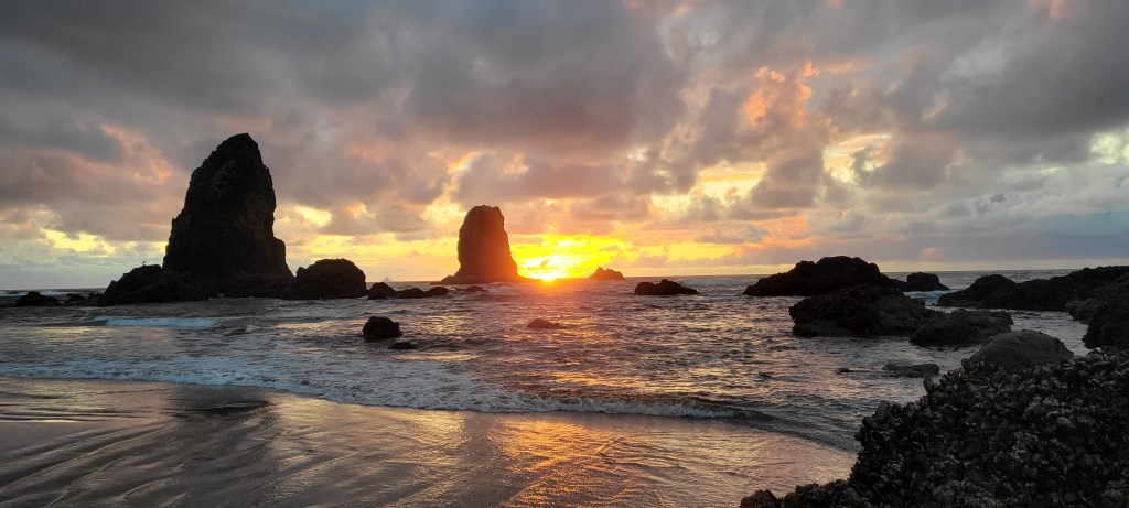 Julie was excited to get out of the familiarity of the I-5 corridor and make her way to the coast. She had been to it a few times, but not for a while and there was so much of it she hadn’t seen. Her first stop would be Haystack Rock. She was looking forward to it, but had no idea how striking it would be in person when arriving. The beach was crawling with living things – most of them people – but not all of them! She just happened to arrive there just at sunset which made for the most magical pictures.