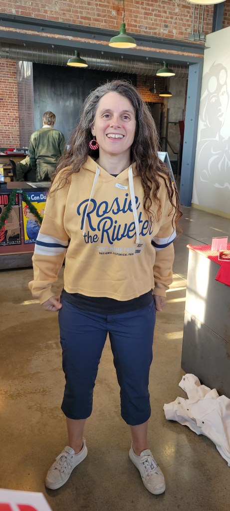 ”We just came from the Rosie the Riveter World War II Homefront Museum.” Julie said, proudly displaying her new favorite sweatshirt that she had purchased earlier that day.