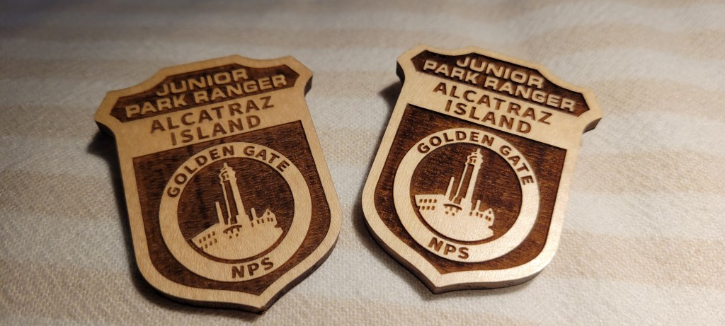 Well, not to brag folks, but it is official – we are now honorary Junior Rangers. Also, not to spoil the end of the story, but we figured, why bury the lead. It’s true. We now bear the official badges of the National Park Service Junior Ranger of Alcatraz Island.