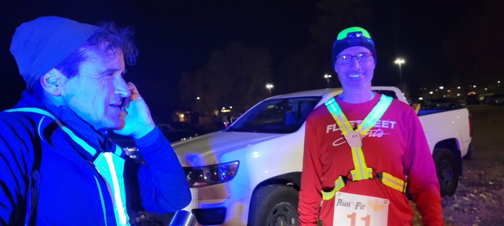 When it became clear we were going to be significantly late, Julie crossed her fingers and called the race director, hoping that would somehow bend spacetime to allow us to still be able to run the race. The race began at 5:30. Our GPS said we would arrive at 6:00 PM. Then, there would be parking and getting to the starting line. Julie explained the situation to Stephen, the race director. Rather than saying, “Oh well,” he immediately went into help mode. He told Julie to call him when we arrived and he would see if he could make it work for us to officially run the race. Race directors are busy people. Especially on race day. And Stephen’s hurried tone on the call showed it. But still, he answered the phone and promised to work the problem with us. Just the fact that he was even willing to do that much already seemed like a Christmas miracle.