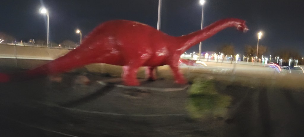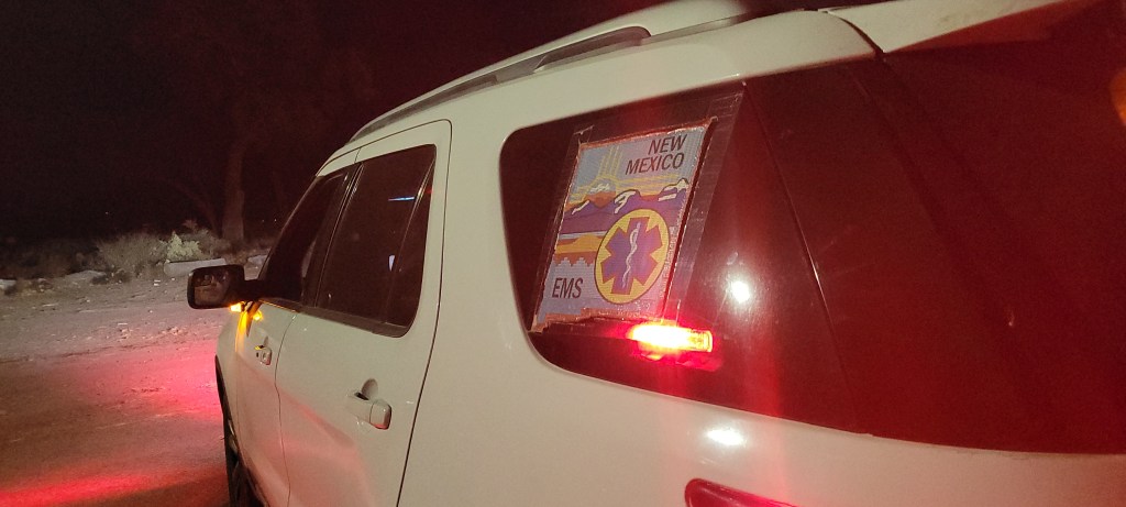Needless to say, we were grateful. Once we began the race – guided by our very own escort vehicle – our gratitude grew, because this may have been the neatest run experience we’ve had on our trip. For the first mile, as we jogged through the perfect night air and into this remarkable scene, we kept repeating, “I can’t believe they are doing this for us.” What a wonderful welcome to New Mexico.