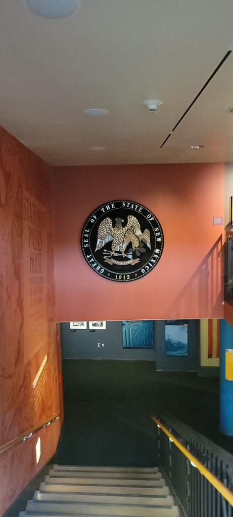 Julie was standing on a staircase headed down into the section of the museum describing New Mexico’s path to statehood, then into the World War I section and then the World War II section.