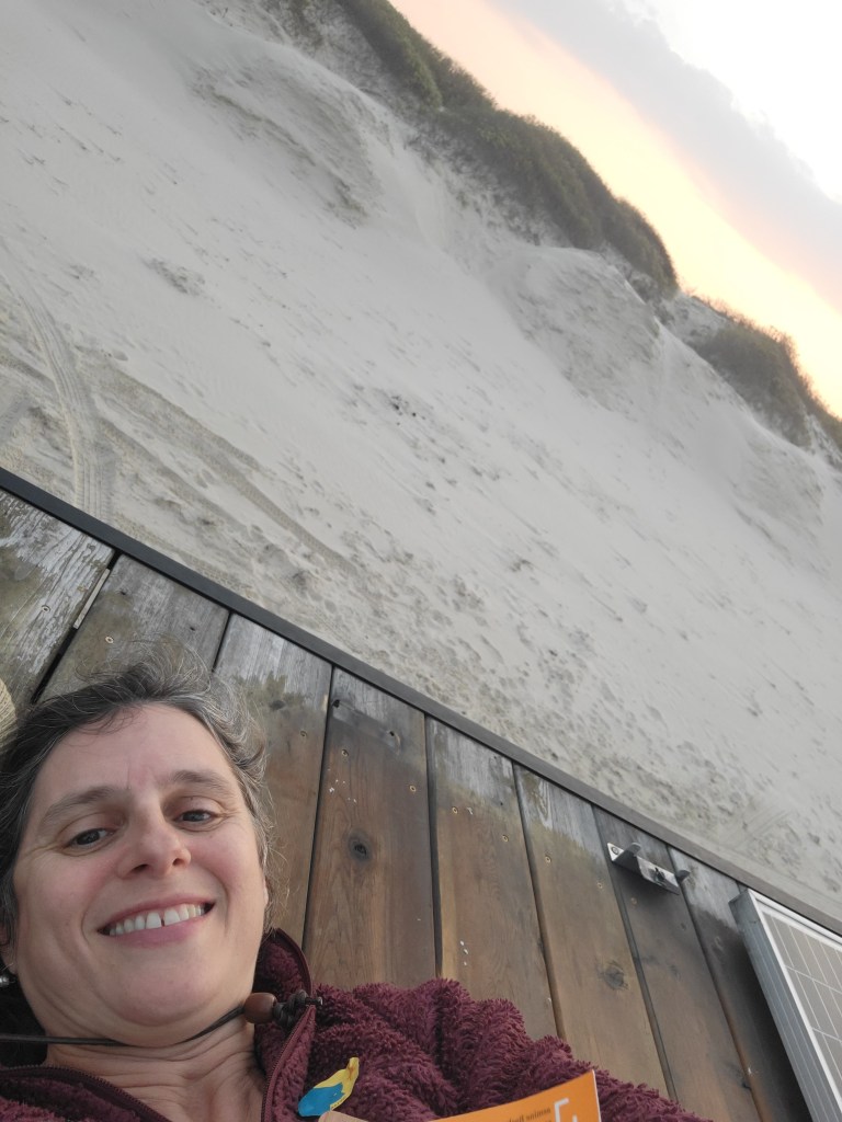There aren’t words to describe how much Julie loved her time at the Malaqite Campground on Padre Island National seashore, so pictures will have to suffice. She spent Christmas in 74 degree weather. The white on the ground was sand and Julie enjoyed spending the day either soaking in the sun and views on the roof deck of the van, hanging out on the beach or hanging in the van with the doors wide open. There was also a special sense of camaraderie and instant neighborhood among the 40 some RVs and campers that had chosen this spot as their place to spend the holidays. Julie got to speak French with her neighbors that were here to get away from teh snow in Quebec. Anyone who knows Julie, knows this made her already amazing day. Julie got two wonderful and separate invitations to share in a Christmas lunch or dinner. She was touched by both, but at this point, so deep in the bliss of her festive solitude and opportunity to write and read to her heart’s content without an itinerary to keep an eye out for that she did her best to graciously decline both.