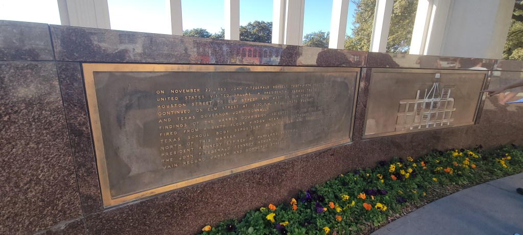 We drove the 1.5 hours to an RV park in Waco while scrambling to do some last minute accommodation planning for our quickly approaching Hawaii trip before heading to Dallas the next morning for our final Texas experiences. We had been planning to visit the Sixth Floor Museum to have a moment of remembrance for the tragedy of JFK’s assassination, but the museum was closed on a Monday. We wandered through Dealy Plaza and felt the solemnity of the spot, especially the spot with the white X painted on the road.