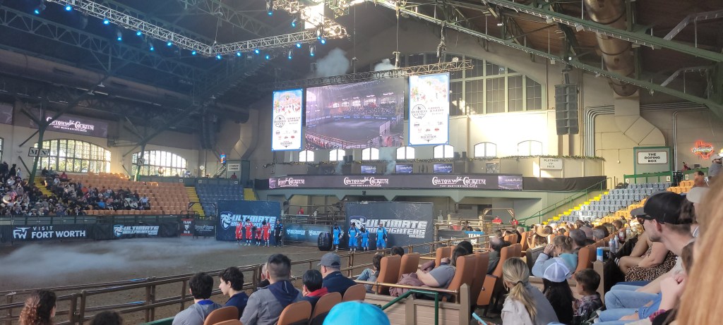 Our next stop was the Fort Worth Stockyards and Cowtown Coliseum. Well, we’d like to say we were well prepared for what was coming, but, if we are being honest, it was, quite literally, our first rodeo. Actually, it wasn’t even technically a rodeo. We had tickets for the 2:30 show which was called the “Ultimate Bullfighters”. The rodeo championships had been going on the week before, including the night before, but we just couldn’t make it in time for that. This show was still exciting to us to get to see real cowboys perform various feats and tricks with wild bulls charging at them. Julie found herself feeling mildly conflicted internally – loving the pageantry, the athleticism and the acrobatics of it all and couldn’t get herself to stop wondering what the bulls thought of the whole thing. (If any Texan is reading this, Julie can imagine them rolling their eyes at the silly New Yorker just about now). But there was no question, we had a blast, we were profoundly impressed and entertained, and perhaps more than anything, we were happy to partake in a piece of Texas and western culture that was completely foreign to us. The most entertaining moment for sure was inbetween the bullfighting when they had members of the audience come out and compete in silly and fun rodeo themed games. One included an easy enough obstacle course made difficult by the fact that participants had to navigate it while wearing “drunk glasses” which apparently make you feel dizzy and spinny like you are deeply inebriated. One after the other, perfectly sober and stable humans struggled to step over a one-foot tall bar without knocking it over or kick a football and then sit down in a chair without using their hands. All easy tasks without the glasses and it was entertaining to watch them devolve into a stupor. But the funniest thing BY FAR was when the second to last contestant who was actually fully inebriated in the real way, put those glasses on and was the ONLY one to absolutely CRUSH that course and take it on with ease. Then, when he took the glasses off to give the MC a high five in his glory, he face planted right into the soft dirt of the rodeo floor with all of the enthusiasm of a 6 foot plus something, drunken, towering Texan. He got back to his feet with his enthusiasm and pride undiminished and fully intact. It was one of the funniest things we’ve seen on this trip by a Texas mile.