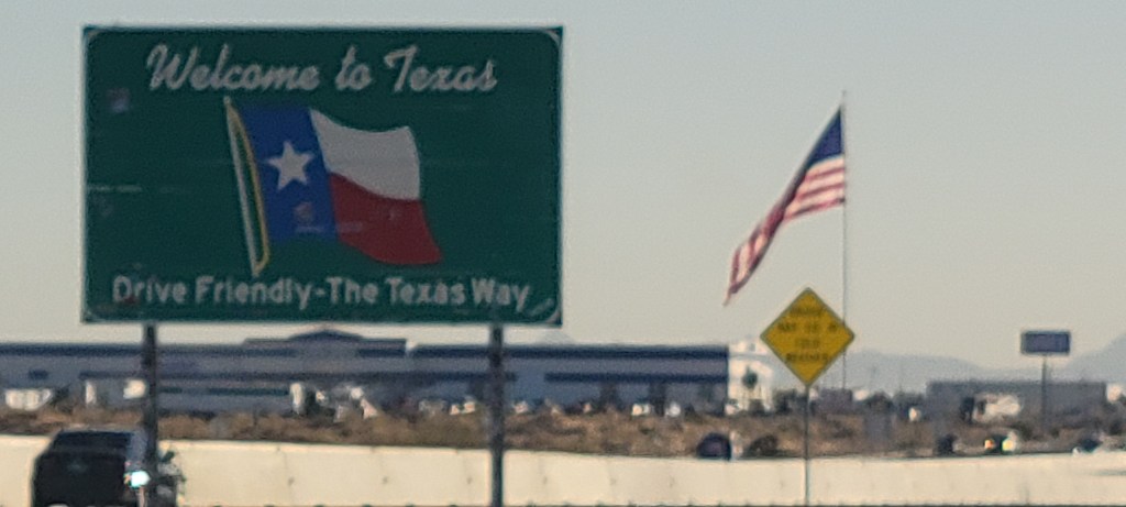 We entered Texas from the border just south of Las Cruces, New Mexico into El Paso. It feels so long ago and far away at the time of this writing. Well, it was 11 days and 1,500 miles ago, so, that feeling is apt.