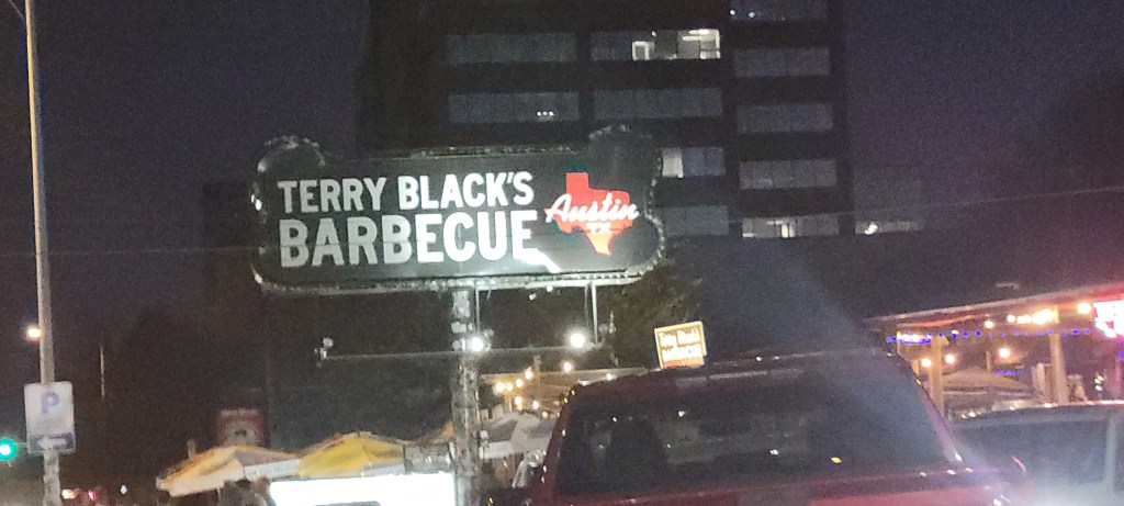Julie wanted to hit a famous bbq place and we picked Terry Black’s in Austin. We had read reviews that it was expensive but worth it. We left with the feeling that both of those adjectives were both apt and a serious understatement. We both intended to order only a humble amount, knowing we’d need to empty our refrigerator in 3 days while we left for Hawaii. We both failed miserably. By the time we sat down, our plates were loaded with more meat than we thought possible. We both agreed that the pork ribs were very good, but that we’d had better. But when it came to the brisket and the beef ribs, it was in a world we had never imagined, let alone visited. Holy wow were those good. And, shall we talk expensive? We thought we would leave with a bill of $80 or $90 dollars. For a dinner for 2, that’s a good amount of money we thought. Nope, our total bill for a dinner at a place that uses bright red cafeteria trays was $200! (That included our gratuity) We were gobsmacked. It turns out the single beef rib that Julie selected had weighed in at 1.6 pounds (they charge by the pound) and cost $60! That is $60 for one rib! Well, that 1 rib could also easily have fed Julie for a good week. And after taking the first bite, Julie conceded that it was worth every single penny! If we went there again, we’d have to be more strategic and reserved in our ordering, but for a one time experience, we were fully on board for our expensive, gluttonous, carnivorous adventure.