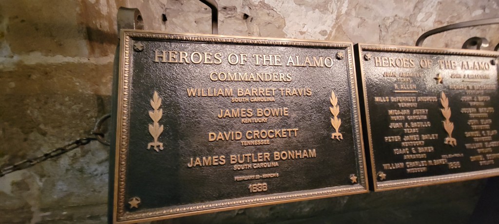 That leads to the second thing that struck Julie. When Julie rounded the corner and saw those buildings for the first time, right there in the plaza, the sight of them nearly knocked her back a step. It’s hard to describe the feeling when one sees something that elicits a deep and visceral feeling, other than to just say that it did. The visceral feeling itself is hard to describe. We had encountered that experience many times on this trip – where you look at something and it absolutely occupies your field of vision and in a way that stirs something inside of you that comes as a surprise and that you realize would be hard to access any other way. We got that feeling standing on Liberty Island taking in the view of the Statue of Liberty. No matter how many times and from how many angles we’ve seen it, it surprises and elicits something powerful each time. Taking in the view of Delicate Arch in Arches National Park or the Grand Canyon did the same thing. You would take your eyes off of them for a mere second and then turn back to look at it and it would hit you again. So it was at the Alamo, seeing the Mission Church. Every time Julie looked up at it, she was awash in something that she would be hard-pressed to find words for other than that it was powerful. The history of it is kept so alive and means so much, especially to Texans, that you almost feel like you are watching the siege of it invisibly playing out in the square these many years later. The building seems to radiate that spirit of defiance and bravery and something else that Julie didn’t have words to express.