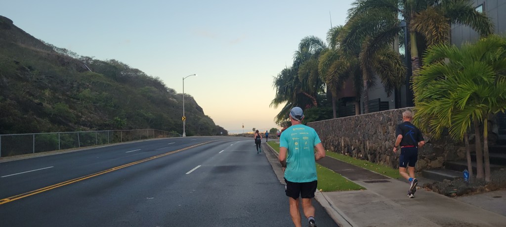 While it wasn’t our motivation for running the 10K, it was nice to run those extra miles. It gave us more exposure to local neighborhoods, and it gave us different views of the ocean and Diamond Head Crater. The race was also a nice way to usher in the new year. With a 7:00 AM start, we experienced Oahu’s first sunrise of 2025 during the run.
