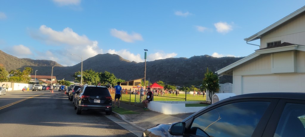 The 10K, which was organized by the Mid-Pacific Road Runners Club, began and ended in Kalama Valley Community Park, about a dozen miles from Waikiki Beach, and ran through the Kalama Valley residential neighborhood near the southeastern point of Oahu.