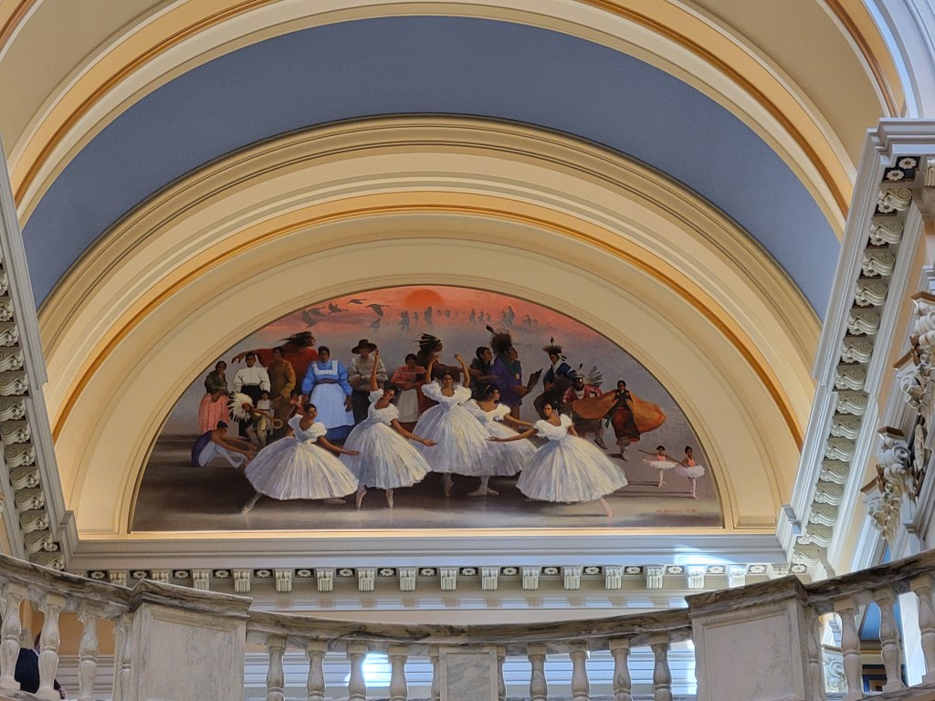 Our tour of the capitol was filled with awe at the tremendous art that filled its halls and the vibrant colors that shone within its capitol dome. We enjoyed our docent that gave us a tour and told us how she is 3/32nd Cherokee, and how that is made official by her ancestors’ signing of the Dawes Rolls generations ago. We also struck up a great conversation with her and two other tour attendees, one of whom you can read about in our People Along the Way section.