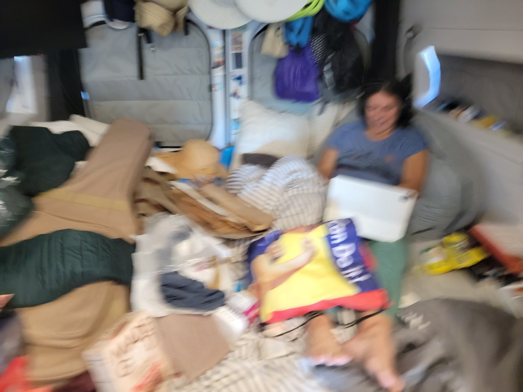 Add on top of that, we had now been in a van for about a week that had gone from neat and organized to utter disaster area within days (this can happen quickly) and tidying up wasn’t going to solve the problem. This called for a full afternoon of reorganization – a task that Julie lives for – but requires time nonetheless.