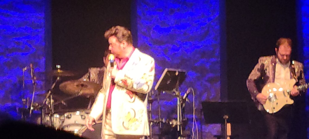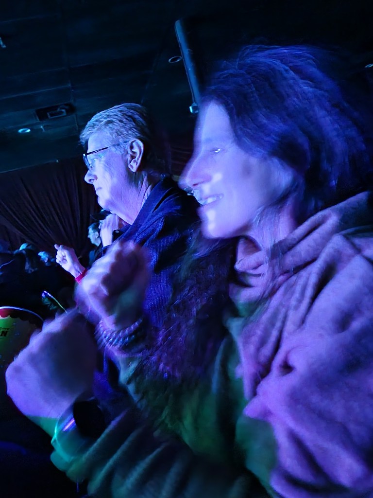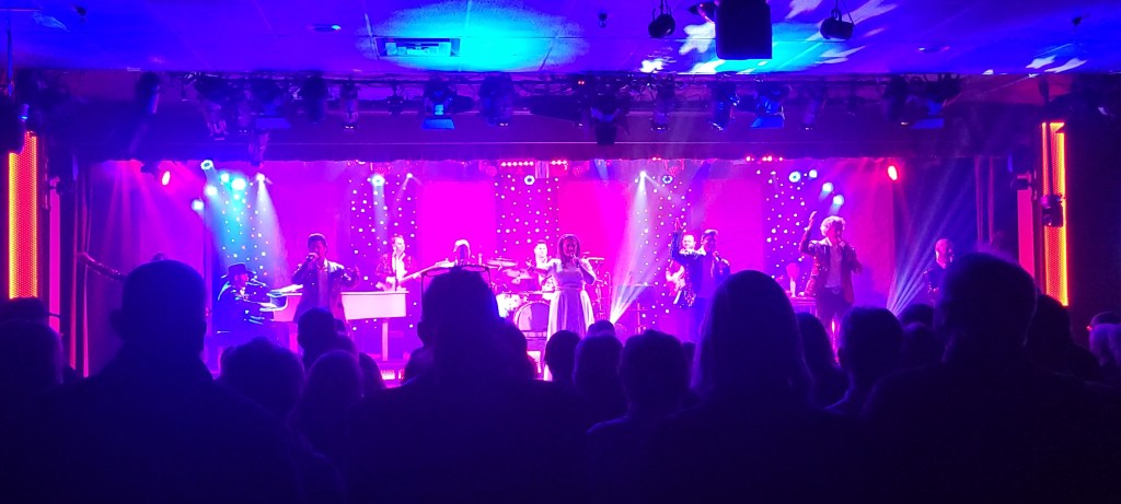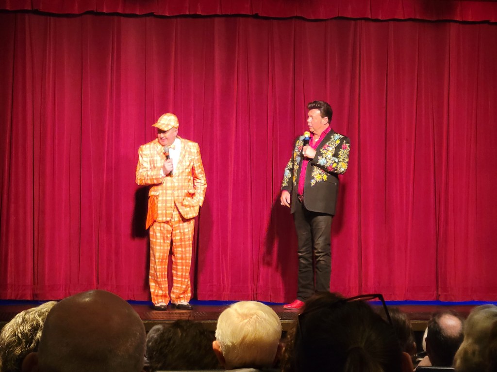 But, what made the show such a good time was more than all that good stuff and even more than the sum of those parts – it was something else entirely. And it was something we didn’t expect from a spot with flashing lights and a bright marquis that screamed, “let us entertain you”. The whole time, we felt like we were hanging out in the living room where a bunch of our talented friends had taken the stage and we all together were just having fun having fun. The show didn’t feel phoned in nor separate from the audience watching it. It wasn’t happening in front of us, it was happening all together somehow. It felt sincere. Who knows what they all felt like backstage – maybe they fooled the heck out of us and couldn’t wait to get out of there – but it seemed like a cozy crowd of folks just having a good time and being silly for a little bit, taking a break from all the seriousness and madness of the world. All of the performers seemed so at home in their skins and on stage and the crowd, mostly consisting of folks a decade or two our senior (to give you a sense of the demographics, the merch table’s featured item were DVDs for sale) it all just seemed like the neighborhood coming to watch the local hyper (and super talented) theater kids put on a show – and we mean that in the best of possible ways.