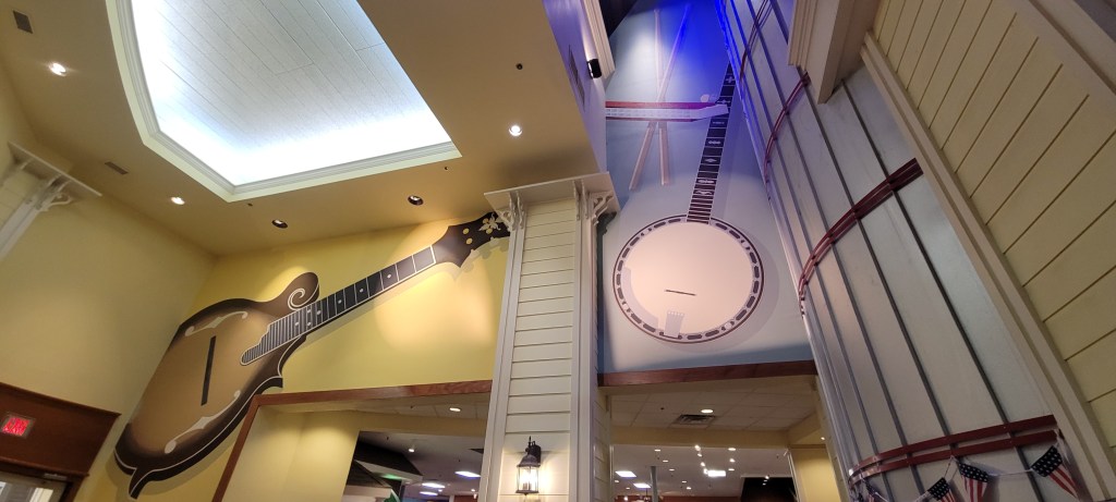 One – there was some serious talent on that stage. The singers were on the great side of good with a few shining particularly bright, like the bass singer that had been performing for 40 years and hit notes so low you could practically feel your feet dig a foot underground just to meet them. They reverberated in your soul. The MC fired out cheesy but fun jokes with an ease and light-heartedness that felt playful rather than smarmy and his costume changes were so bountiful and fantastic, he could have easily made Taylor Swift envious. And the show’s jester that came out to do ridiculous vignette’s inbetween songs, well, he was operating at a whole other level. We both felt like, if circumstances had unfolded differently, he could easily have been considered among the greatest entertainers of all time, that is, if the world had gotten more of a hold of him. He made his home right here in this little theater of Branson, but his talent could easily have conquered the world stage. Not only did he make us laugh throughout, but, at the end, just, as an afterthought, he was paraded around the stage like a circus act to show off that he could not only play every instrument on the stage, but tear each one apart. Our jaws were dropped as he hopped from fiddle, to piano, to drums to banjo, banging out music on each one that would make any musician stand at attention.