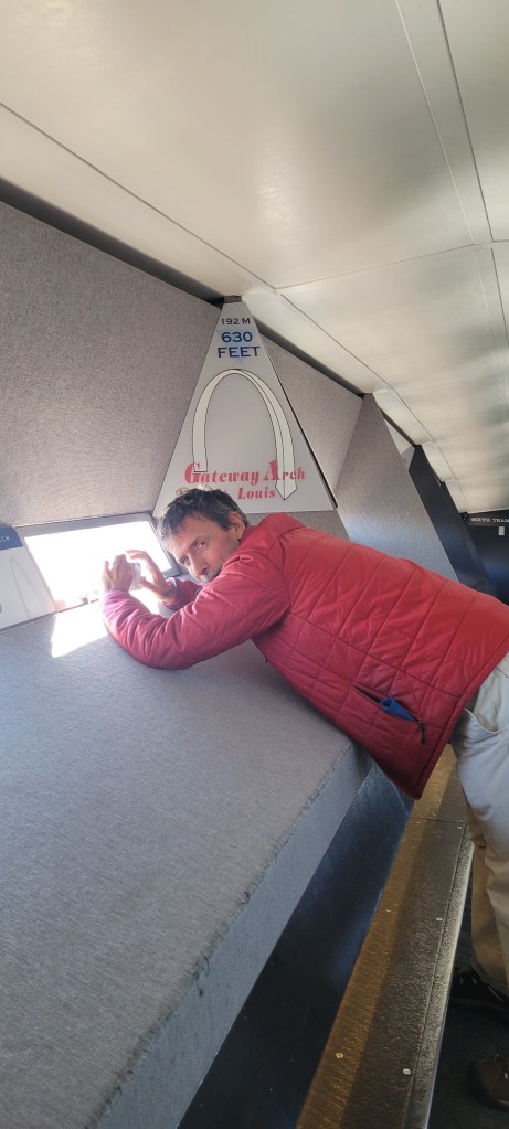Going up into the Gateway Arch in St. Louis was an adventure in itself. To get to the top, visitors crawl through 4 foot tall concrete doorways into a teeny little round pod that glows blue, giving off an aura like you are getting into a spaceship. Inside the little pod are five seats crammed together in the round. The steel doors close behind you and then the various ropes and pulleys start to crank you up the 634 feet to the top of the arch. It takes 4 minutes to get to the top and, when you are there, you can almost feel the empty space that you are hovering above however many feet of steel below you. Leaning over to peer out the windows and take in the view of St. Louis in all directions was pretty neat – especially looking at the historic old court house just below where the impactful Dred Scott decision was, regrettably (to say the least) rendered. We could even see our van from this elevated vantage point. It’s an experience worth having for anyone willing to make the climb. There is plenty of airflow inside the little tram pod, but for those that aren’t too keen on small spaces or heights, it’s probably not the best combination. We loved it. Afterwards, we roamed the history museum inside the arch visitor’s center and took in their 30 minute documentary about the construction of the arch. If you ever get a chance to go there, we highly recommend watching the documentary, and doing so after you go up to the top. It is an absolute marvel of engineering and construction and watching what those gentleman did to put the arch in place will surely cause an audible gasp or jaw-drop at some point.