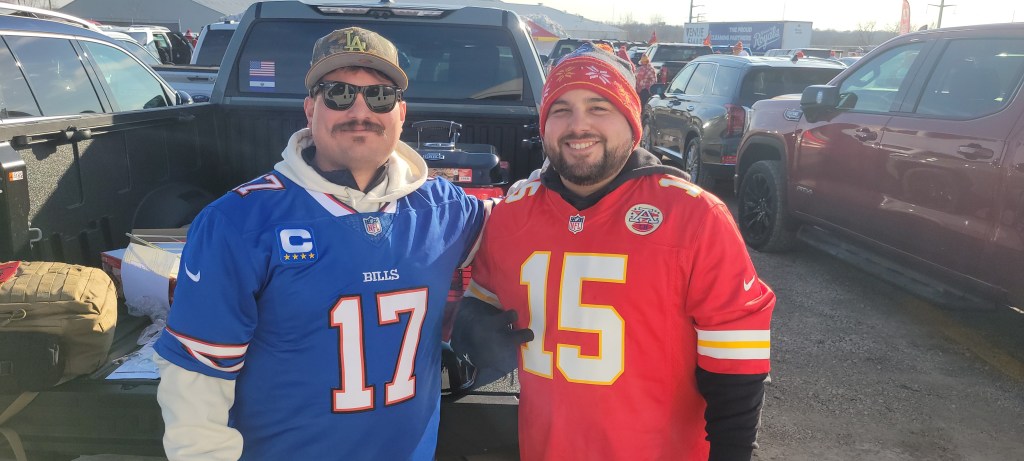Outside the museum we saw two fully decked out Chiefs fans cross pathswith a jersey-clad Bills fan.. “Good luck today, brother,” one of the Chiefs said with a sincere smile while extending his fist for a fist-bump. “Thanks. You too,” the Bills fan said as he completed the fist-bump.