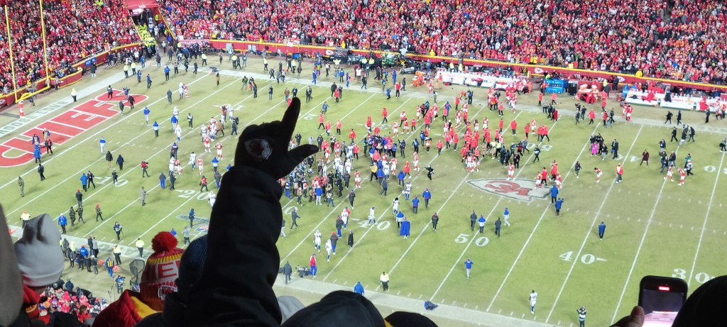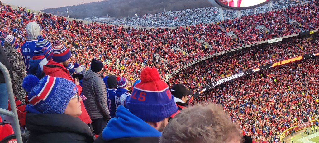 It is with a combination of elation for the experience and opportunity, and peaceful, familiar, mildly devastating heartbreak for its outcome, that we report that, by the magic of coincidence and synchronicity, we got to have one of the most, sadly, quintessential Kansas City experiences of all. We got to watch, in person, the Kansas City Chiefs bring a close to the post-season of our team, the Buffalo Bills.