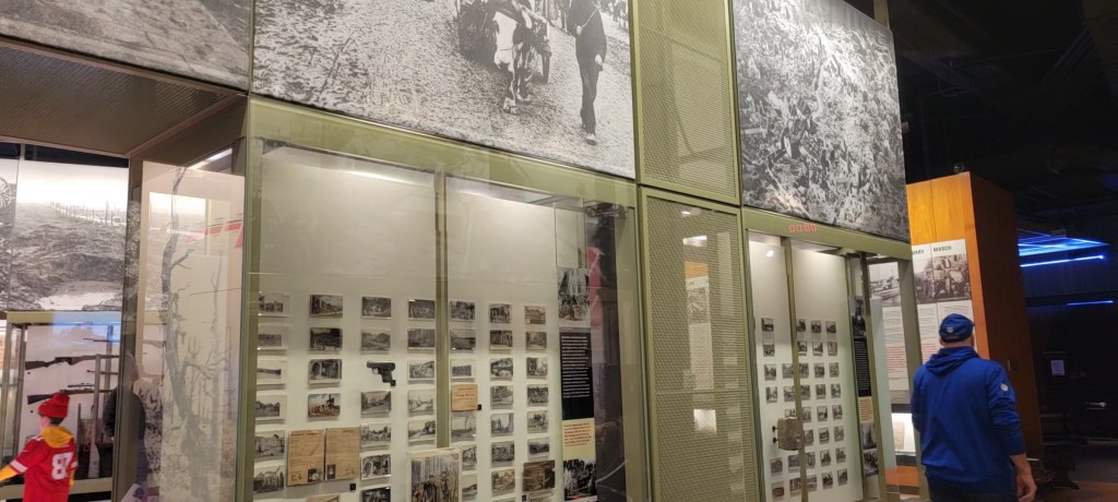 And the pain is very real. When all was said and done and the victors were triumphantly receiving their trophy on the field, we lingered for just a bit. The crowds in the upper decks had thinned out. We turned to leave midway through the ceremony and saw a set of Bills fans one row behind us across the aisle in the very last row. There was an older gentleman standing there stone-faced. It is difficult to describe the look on his face, but the best word to approximate it was heartbroken. We tried to reach out in the shared experience. “It hurts, doesn’t it?” He looked at us like he was being snapped out of a trance, like he was struggling to speak without breaking down into tears. You could see the effort he was using to keep it bottled up. He finally got some words out about the technical elements of the play. Before long, we could tell this man was not in a state to talk and we cordially wished them well and moved along. Yes, the disappointment and devastation for the vanquished is very real. But still, it is not measured in body bags and limbs lost and lives and communities given over to the pain and destruction of war, as illustrated at the World War I Museum. It was a powerful juxtaposition in one day.