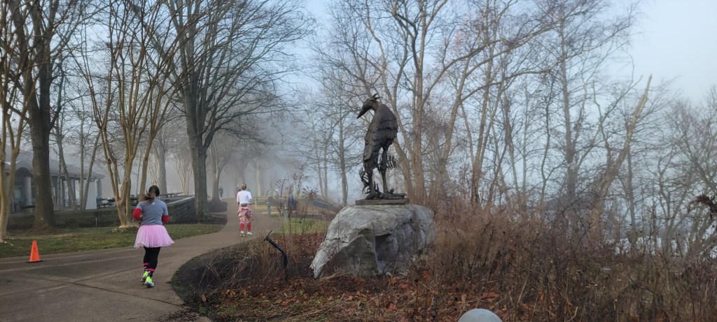 There was one other important factor in this race. We had been in Tennessee for four days so far, and Missouri just before it. If there is one thing we did in those four days, and the day before in St. Louis…it’s eat. We had St. Louis barbecue, followed by Memphis barbecue, followed by Nashville Hot Chicken…2 nights in a row. French fries accompanied each of those meals. By the time we hit the start in line in Chattanooga, our bellies were still full from 5 days in a row of some serious eating. With no regrets and only a little worse for the wear, we both had to carry our leaden stomachs the 3.12 miles.