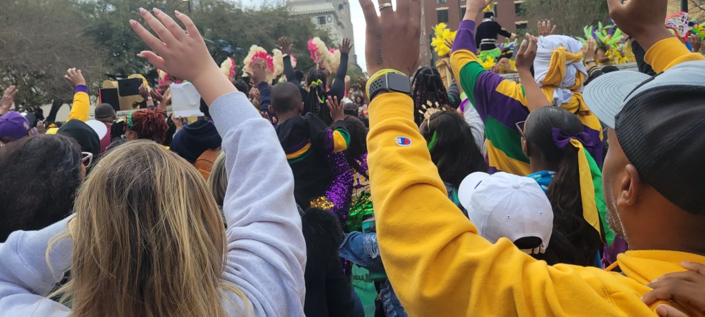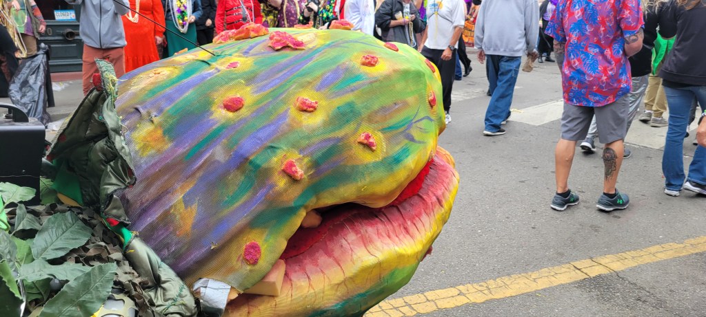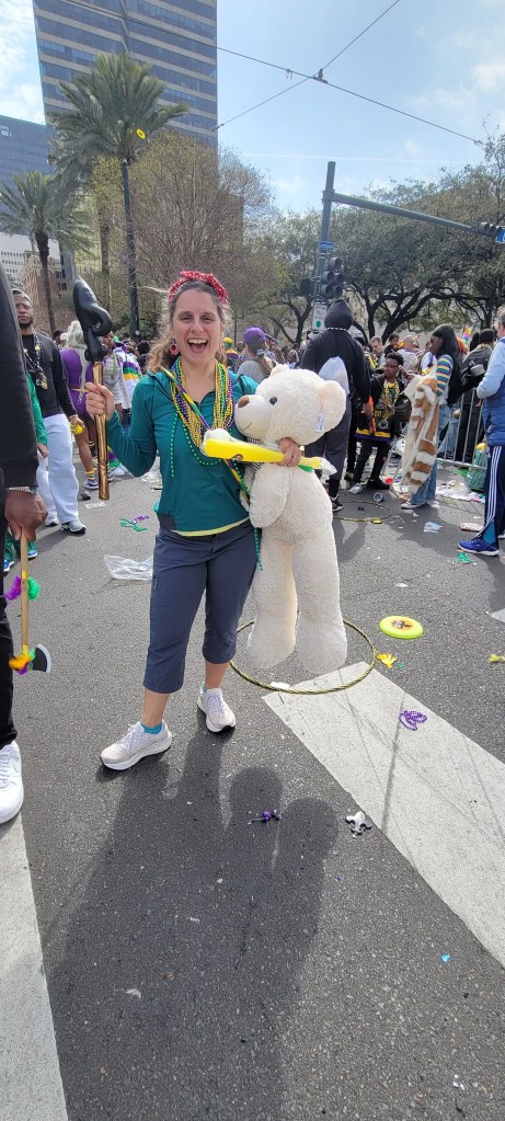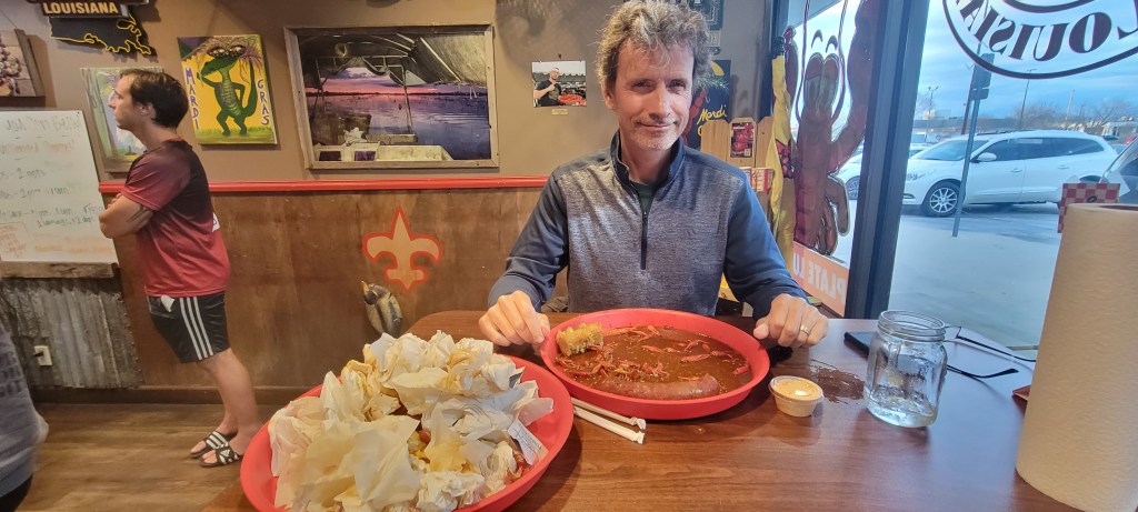 Louisiana sunshineHome for a nightShe can do itReady for Mardi GrasMardi Gras muralOn St. CharlesThe front of the paradeAt the paradeParade bootyParade floatIn the crowdWaiting for more stuffThrow it to me!And me!Beads on displayBears and whiffle ball bats and and scepters. Oh my!In the crowdLike goats reaching for feed at a petting zooZuluParade detritusCasual attireNormal Mardi Gras attireNormal Mardi Gras attireMardi wallWriting on the wallBourbon StreetJust another day in New OrleansJust in case…Bourbon Street bountyAristocratic partiersTop of the world, Ma!Like mother, like daughterAround every corner…Hangin’ outFaces in the crowdFaces in the crowdFaces in the crowdHello, SeymourGarden paradeOut of this worldAngels in AmericaCasual TuesdayRemember where you areGotta have your DunkinRising above it allJust another dayA new friendIn the French QuarterChillin’ at the marketArt on artBeignetsMmmmMessy fingersDon’t do it!Everyone needs someBourbon Street jazzSt. Louis CathedralNot St. Louis CathedralJackson Square busking bandMoving the barricadeFrench Quarter cornerJoan of ArcDown by the riverHistoryLiving (?) artCome on inRyan’s mealJulie’s mealLess creepy when breadedHoopin’ in the vanPublic fruitOut for a jogWelcomeJulie & FDRWorld War II MuseumWorld War II MuseumWorld War II MuseumWorld War II MuseumWorld War II MuseumWorld War II MuseumSt. Louis CemeterySt. Louis CemeterySt. Louis CemeterySt. Louis CemeterySt. Louis CemeterySt. Louis CemeterySt. Louis CemeterySt. Louis CemeteryLet the good times rollHangin’ with MardiGator countryKeep the streak goingWe wouldn’t want thatLazy SundayRaccoonsBaby gatorNot a babyBaby gatorThose eyes…Whitney PlantationPlantation houseOutbuildingOriginal barnBlacksmith shopSugar cane refining urnsUprising memorialPlantation statuePlantation turtlePlantation snailSolomon NorthupPlantation statuePlantation sculptureSouthern University Jaguar5K food truck5K pre-race5K Zulu krewePost-race jambalayaCapitol funHuey Long from the capitol towerCapitol plaza from aboveCapitol entranceLouisiana state capitolCapitol lobbyView from the towerCapitol lobby viewOld state capitol muralOld state capitol ceilingOld state capitol lobbyOld state capitolBaton RougeBaton RougeBaton RougeBaton RougeBaton RougeMerci Train carMike the tiger at LSUBecause Mike will try to attack youTiger StadiumRoadside LouisianaStay classyTesting the watersAt the Tabasco factoryAt the Tabasco factoryAt the Tabasco factoryIn case you have to get out fastTabasco factory bamboo groveTabasco truckTabasco factory bamboo groveTabasco mash aging in salt-sealed barrelsThey mean itTabasco barrel museumNew Iberia, LouisianaNew Iberia, LouisianaCalling us inCrawfish boilGetting startedLike it was nothin’This looks seriousIt wasEasin’ on down the roadFamous for a reasonNatchitoches windowThe famous Natchitoches meat pieFamous for a reasonSteel Magnolias in NatchitochesNatchitoches sidewalkPoverty Point World Heritage SiteNothing to shake a stick atUp the Indian moundOn the Indian moundDown the Indian moundSwimming siteSwimming timeMarshy roadsideRunnin’ down the road