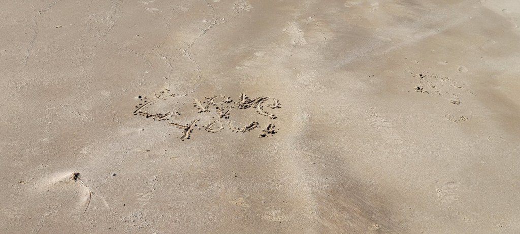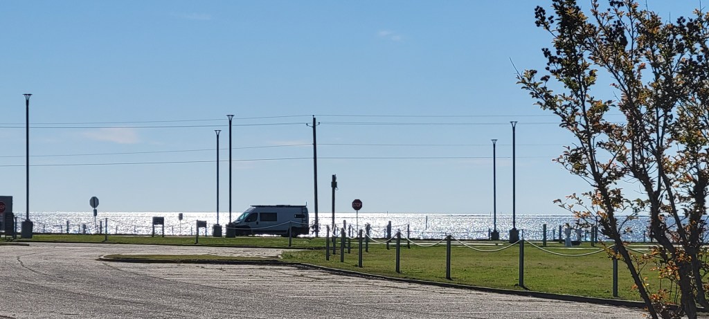 After our morning 3.1 miles, we enjoyed a beautiful day looking out at the white sand beaches and waters of the Gulf. Julie finished her ode to Mississippi. We then drove to Biloxi, where we parked by the beach and worked on our Mississippi postcards and blog entries. After a sunset and a quick stop at the post office we bid adieu to the Magnolia State and pointed the van toward Alabama.