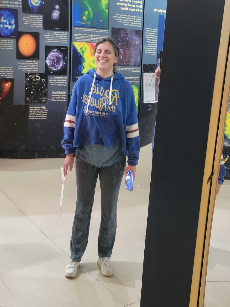Well, in this particular science center, Julie was pretty excited, for the first time in her life, to get to meet the 5’4” Julie she had long known inside. As the Pointer Sisters once so eloquently put, she was so excited and she just couldn’t hide it. She couldn’t get enough of seeing herself on the outside the way she felt on the inside.