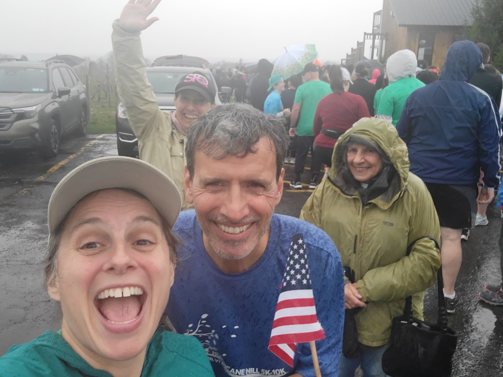 It was a rainy Saturday morning in Geneva, NY, for the Three Brothers Spiked Apple 5K. The pleasant, 65-degree temperature dropped ten ticks in the hour before the race, but the cold, gray morning was warmed and brightened by the sight of familiar faces.