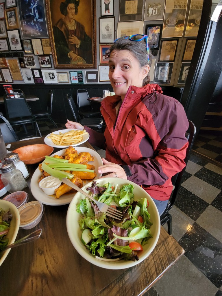 Ryan had been to the Anchor Bar before, but Julie never had. As Julie sometimes likes to do when something on the menu that she really wants has dairy in it, she likes to pretend she is not allergic to dairy and just take one for the team. Oftentimes, that means eating a gluten free cookie with only a little bit of butter in it or a touch of milk. She usually manages to get away with it fairly well. But, there is no question, Julie is definitely allergic to dairy and, though she dove into those wings with buttery Buffalo sauce like she wasn’t, this was no small dose. She had no questions in the post Anchor Bar hours that, though she had tried to pull one over her body, the jig was up. Julie spent the next few hours walking around feeling like a dumpster fire was going on in her bowels, and she did so with zero regrets. Those were some goood chicken wings.